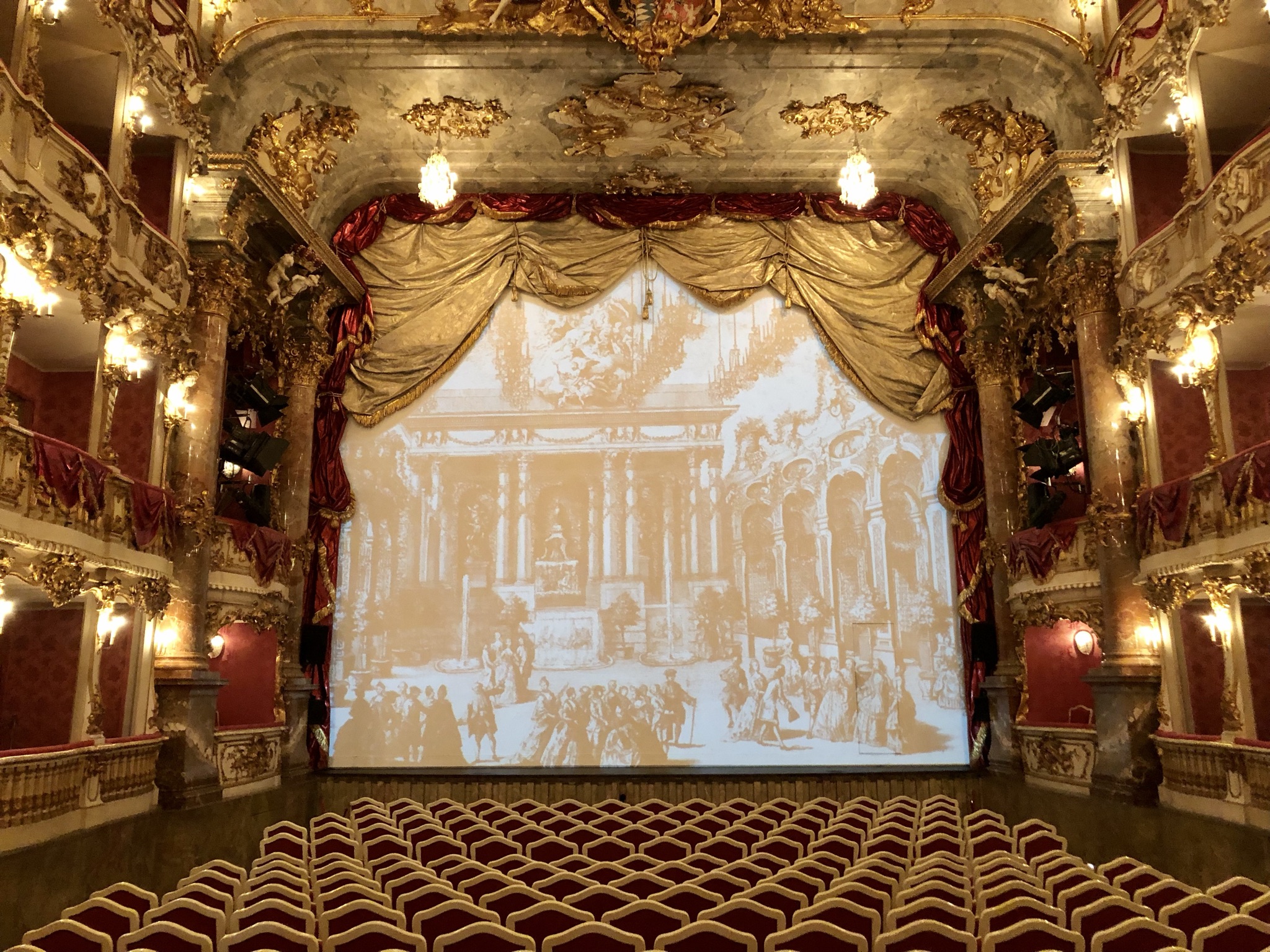 Web oficial]: Es el teatro rococó conservado más hermoso de Europa. Diseñado en 1751-1753 por François de Cuvilliés el Viejo (1695-1768) junto a Johann Baptist Straub y Johann Baptist Zimmermann. Aún conserva las tallas en madera doradas y rojas de sus palcos, la galería Real y el proscenio. Fue el escenario donde se estrenó en 1781 'Idomeo', de Mozart. Destruido durante la Segunda Guerra Mundial, el teatro fue reconstruido en el Apotekenhof utilizando los restos de tallas originales. Fue renovado y reabierto en el año 2008 y en 2011, Konstantin Grcic rediseñó el vestíbulo y las habitaciones del primer piso con vistas a Max-Joseph-Platz. El Residenztheater es la sede principal del Teatro Estatal de Baviera.